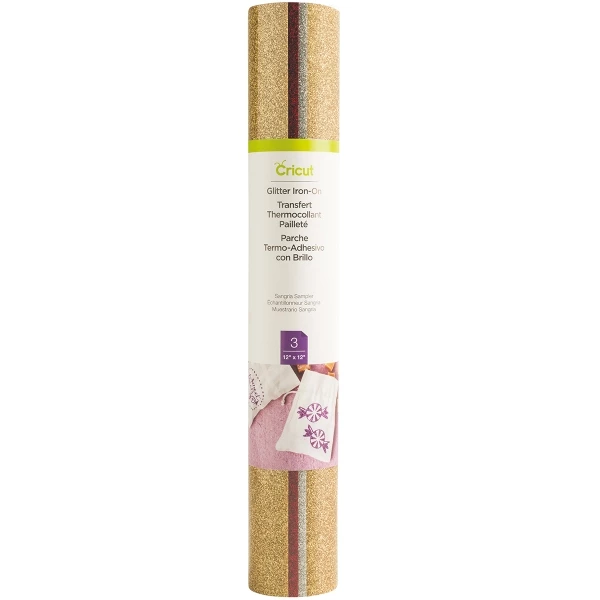 Cet assortiment de Flex thermocollant Pailleté Cricut contient 3 feuilles Glitter de coloris Doré, Argenté et rouge de 30,5 x 30,5 cm qui seront parfaites pour personnaliser tous vos textiles. Spécialement conçu pour une utilisation avec la machine de découpe Cricut Maker, vous pourrez charger le vinyle avec un tapis de coupe StandardGrip ou LightGrip (vendus séparément).