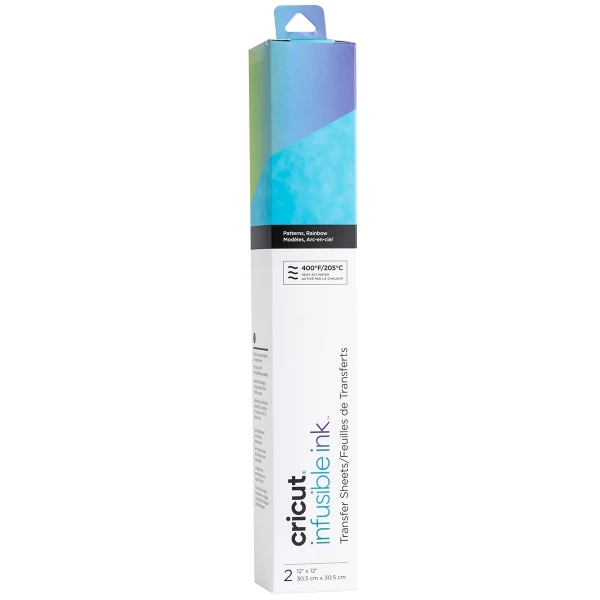 Données techniques pour Infusible Ink à motifs Cricut Maker – Arc-en-ciel – 30,5 x 30,5 cm – 2 feuilles