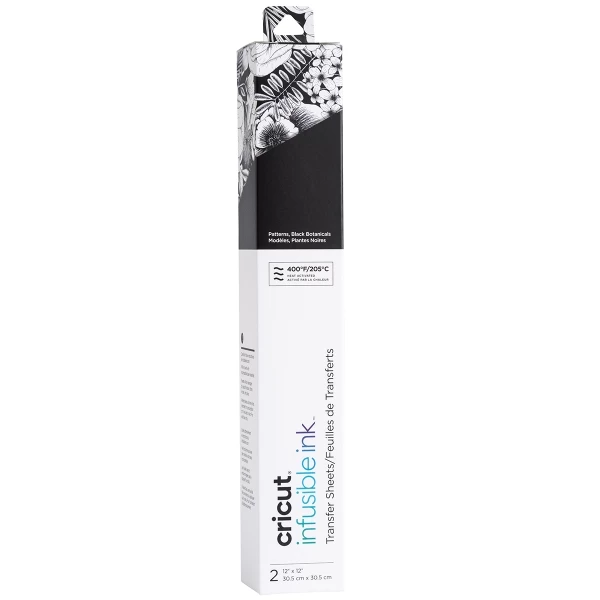 Données techniques pour Infusible Ink à motifs Cricut Maker – Black Botanicals – 30,5 x 30,5 cm – 2 feuilles