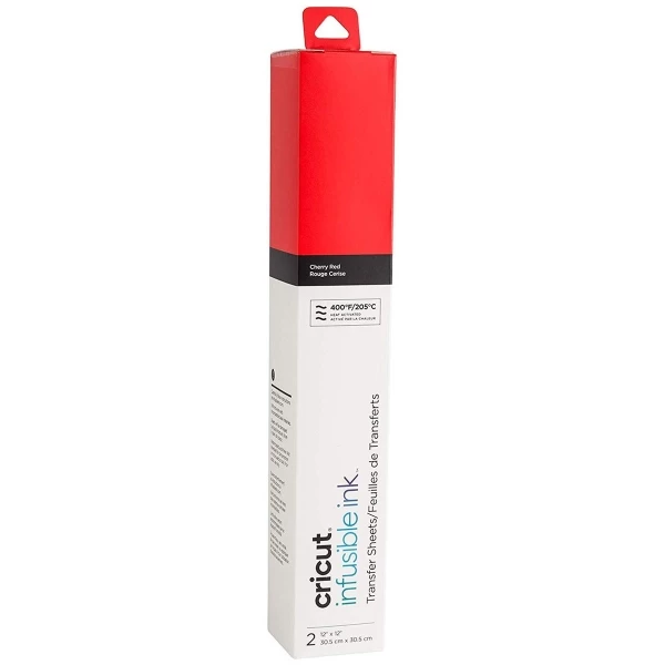 Ce set Infusible Ink Cricut contient 2 feuilles de 30,5 x 30,5 cm coloris Rouge cerise. Si vous utilisez l’infusible Ink avec la machine Cricut Maker il vous faudra utiliser un tapis de coupe StandardGrip Cricut Maker. Pour assurer le bon maintient de vos transferts sur vos tissus vous pouvez utiliser le Ruban adhésif résistant à la chaleur de chez Cricut