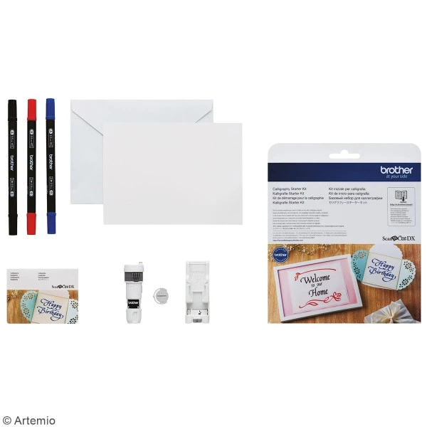 Ce kit de démarrage pour la calligraphie Scan’n’cut de Brother est compatible avec les machines Scan’n’cut DX de Brother. Il contient tout le nécessaire pour commencer l’art de la calligraphie, vous pourrez ainsi créer de magnifiques calligraphies sur vos cartes créatives, faire-part de mariage ou de naissance.