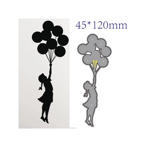 Cette matrice de découpe représente une petite fille qui s’envole avec des ballons. Die en métal, découpe très nette. Réalisez une page de scrapbooking sur le thème des enfants. Dimensions4,5cm x 10,2cm