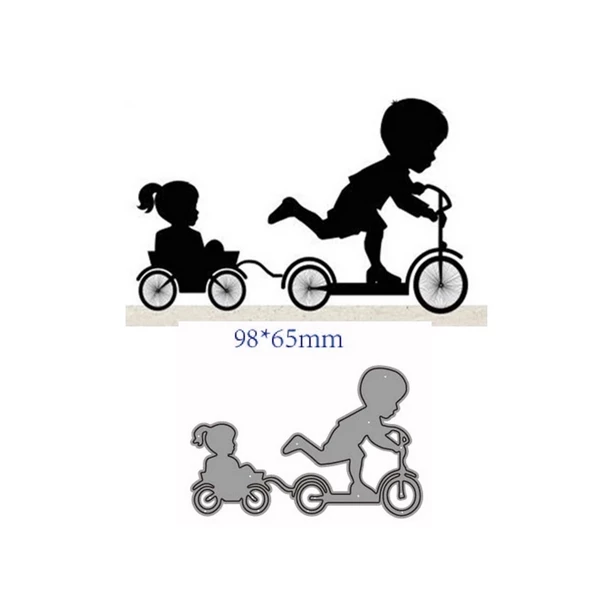 Cette matrice de découpe représente un petite garçon sur sa trottinette avec sa s½ur dans la remorque. Die en métal, découpe très nette. Réalisez une page de scrapbooking sur le thème des enfants. Dimensions9,8cm x 6,5cm