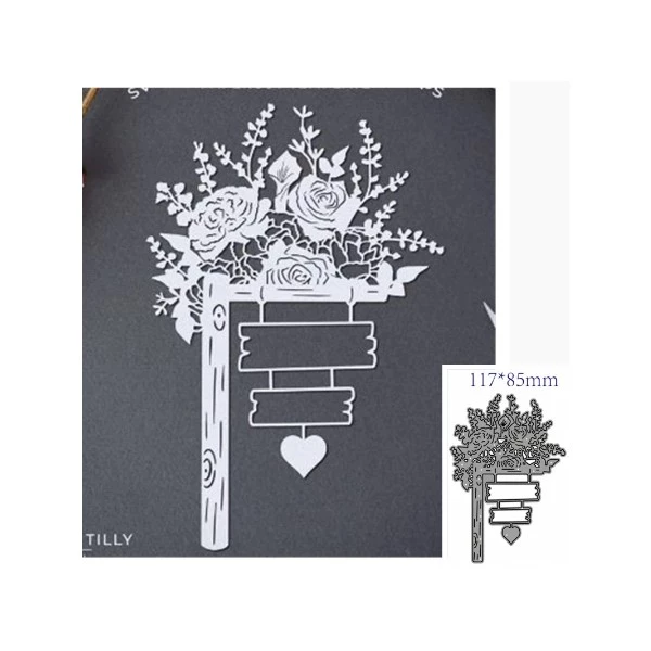 Matrice de découpe sur le thème des fleurs avec cette pancarte en bois fleurie 1 pièce Dimensions11,7cm x 8,5cm