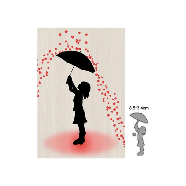 Die de scrapbooking sur le thème des enfants, avec cette petite fille tenant son parapluie sous une pluie de coeurs. 1 pièce Dimensions8cm x 4cm