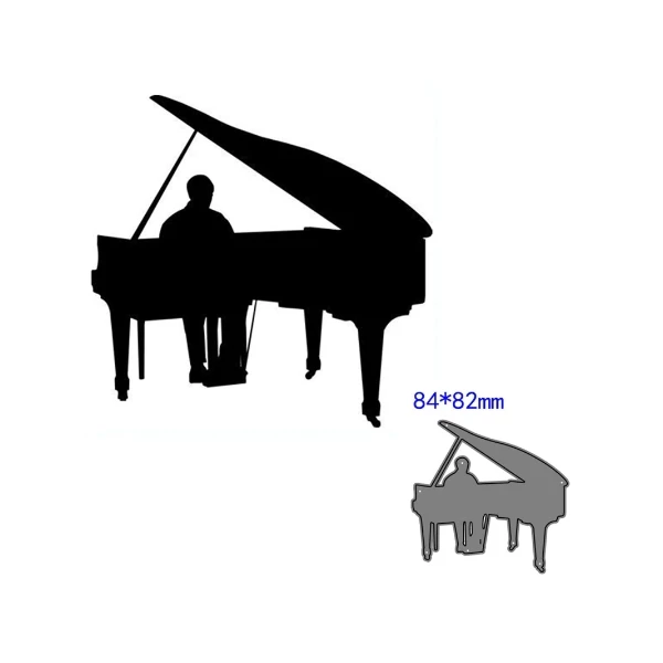 Die de scrapbooking sur le thème de la musique avec ce joli piano à queue et son pianiste 1 pièce Dimensions du motif8,4cm x 8,2cm