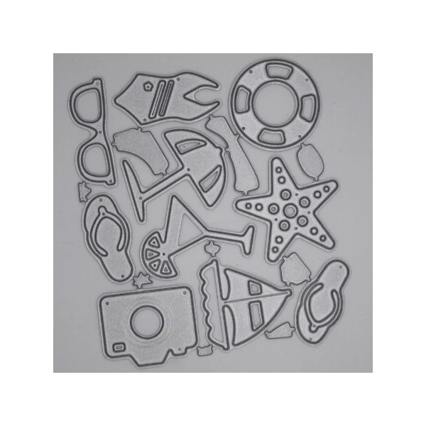 Dies de scrapbooking sur le thème de la plage, de la mer 15 pièces Dimensions du parasol3cm x 2,6cm Diamètre de la tong2,6cm x 1,6cm