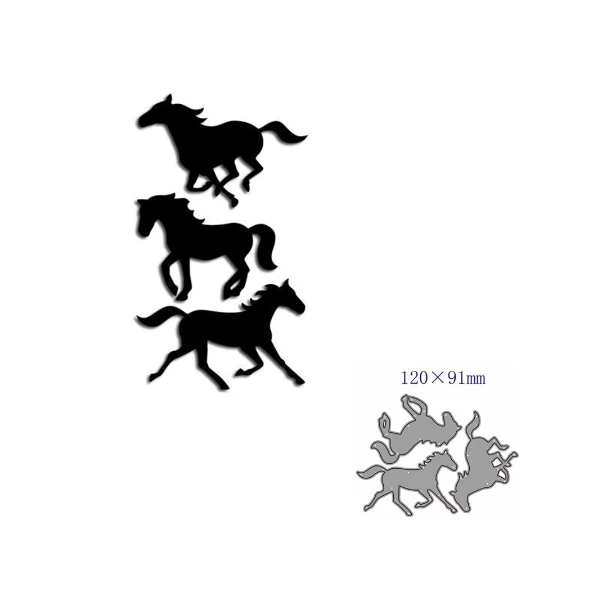 Matrice de découpe sur le thème des chevaux. Réaliser vos pages de scrapbooking sur le monde hippique avec ces jolis chevaux. 3 pièces Dimensions d’un cheval7cm x 4,8cm