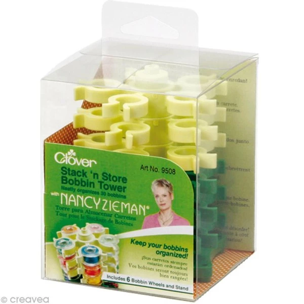 La tour range-canette est un astucieux accessoire à avoir dans votre atelier de couture. En effet vous pourrez entreposer jusqu’à 30 canettes de fil. Les étages sont modulables entre eux. Fini les canettes éparpillées dans un tiroir ! Résolument pratique, la tour range canette par Nancy Zieman pour Clover possède en plus un design très actuel.