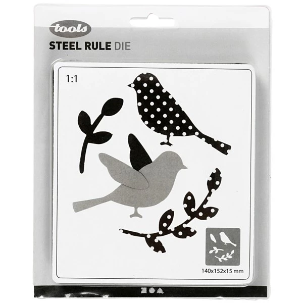 Modèle Oiseau (5 formes) pour la découpe de motifs dans des matériaux épais comme la mousse EVA, le papier cartonné métallisé, le papier cartonné épais, le cuir, le liège, le feutre ou le papier. À utiliser avec les machines à couper et à embosser no. 11761 et 11792.