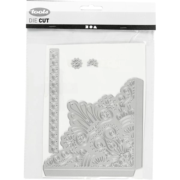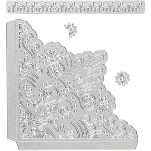 Description de Matrice de coupe – Coins décoratifs – 14 x 14 cm – 4 pcs