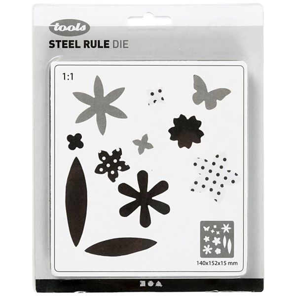 Modèle Fleurs (11 formes) pour la découpe de motifs dans des matériaux épais comme la mousse EVA, le papier cartonné métallisé, le papier cartonné épais, le cuir, le liège, le feutre ou le papier. À utiliser avec les machines à couper et à embosser no. 11761 et 11792.