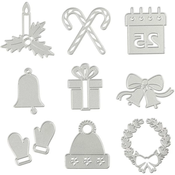 Description de Gabarit de coupe et gaufrage – Motifs de Noël – 9 éléments