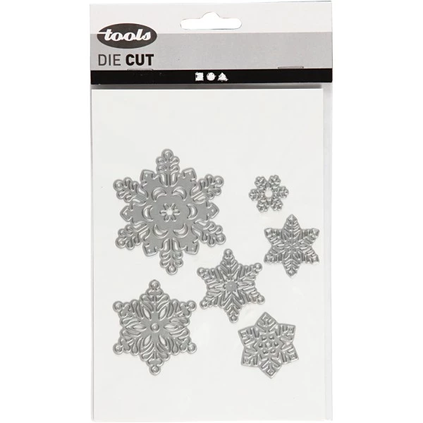 Gabarit pour la découpe de motifs Flocons dans de la mousse EVA, du papier cartonné métalisé, du papier cartonné épais ou du papier. Compatible avec les machines à couper et à embosser – articles no. 11761, 11792 et 11799.