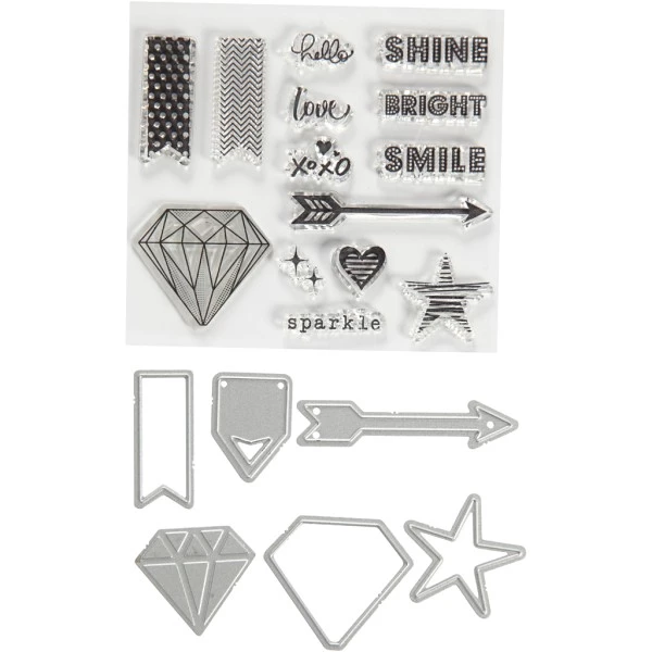 Données techniques pour Set de scrapbooking – Tampons transparents, Matrices de coupe et d’embossage – Diamant – 21 pcs