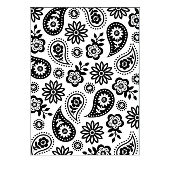 Die classeur d’embossage paisley nature Le classeur d’embossage est compatible avec la majorité des machines de découpe dont la big shot, la big shot plus, etc UtilisationPlacer la matrice bords coupants en haut et poser le support dessus. Couvrir avec la plaque supérieur. Insérer le sandwich dans la machine et tourner la manivelle jusqu’à ce qu’il soit passé dans les rouleaux.