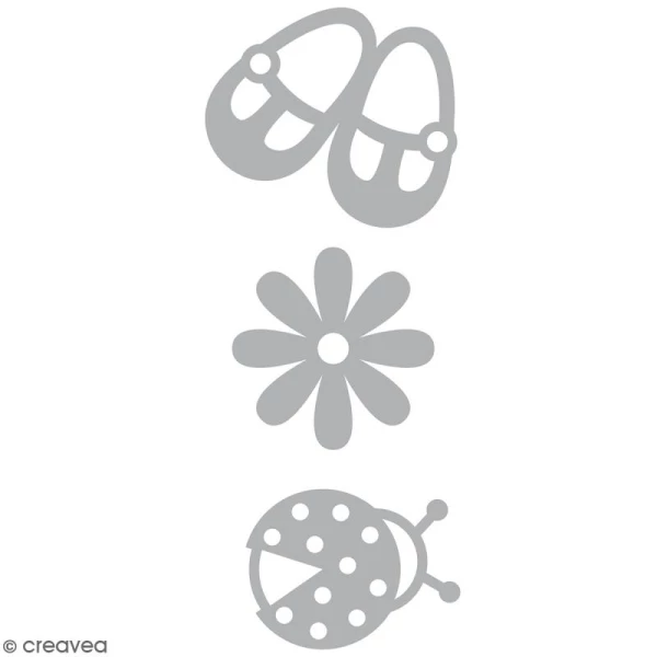 Données techniques pour Dies Artemio Coccinelle Fleur & Chaussons – 3 matrices de découpe