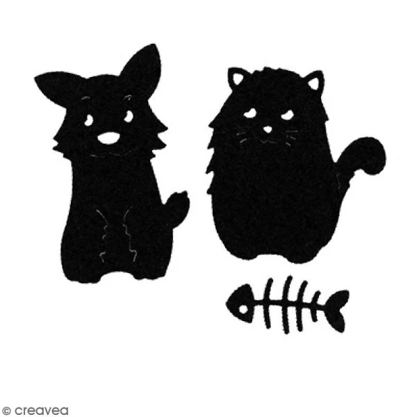 - Dimensions3.1 x 5 cm (chien), 2.7 x 1.3 cm (poisson), 2.2 x 0.9 cm (os), 3.9 x 4.2 cm (chat)
