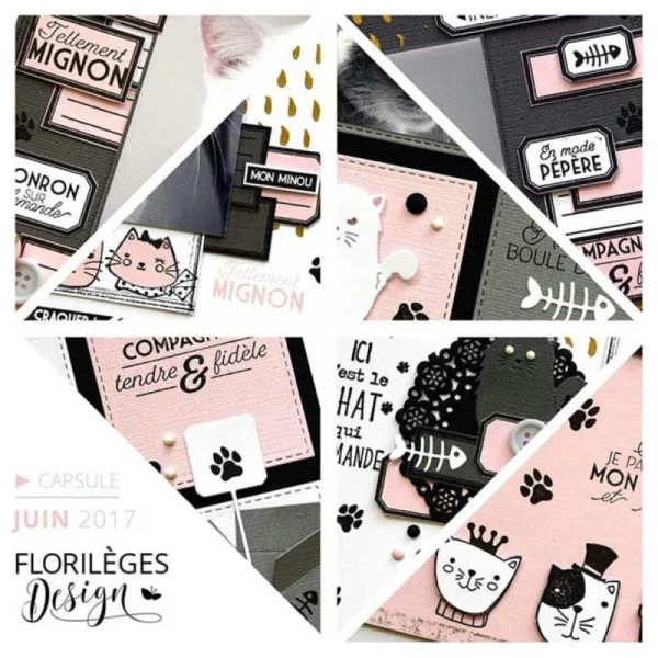 Lot de 4 dies Petits compagnons de Florilèges Design. Ces matrices de découpe vous permettront de découper plusieurs formes du modèle sélectionné, à l’infini, et cela sur de nombreux supports. Cela vous sera parfait pour des projets de décoration, de carterie, de scrapbooking, etc.