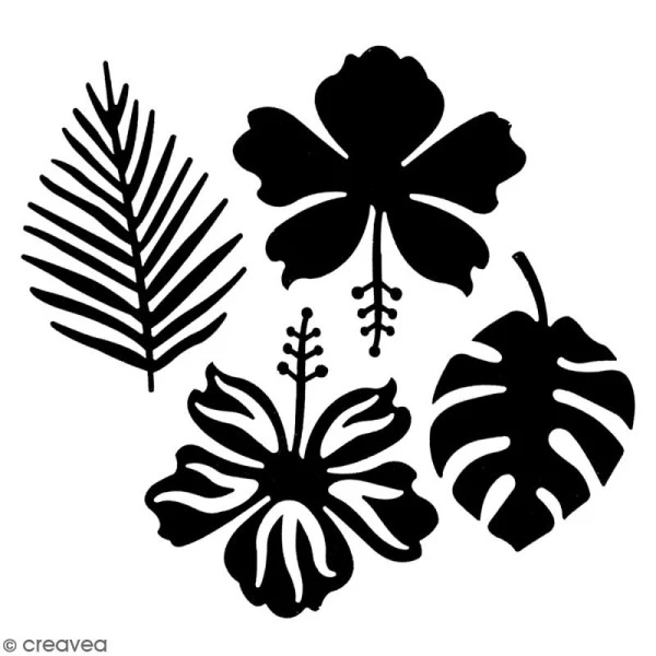 - Dimensions4,1 x 3,9 cm (feuille exotique) , 4,9 x 4,9 cm (fleur 1) , 5 x 4,8 cm (fleur 2), 5,4 x 4 cm (feuille)
