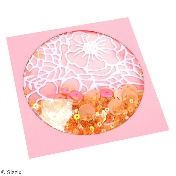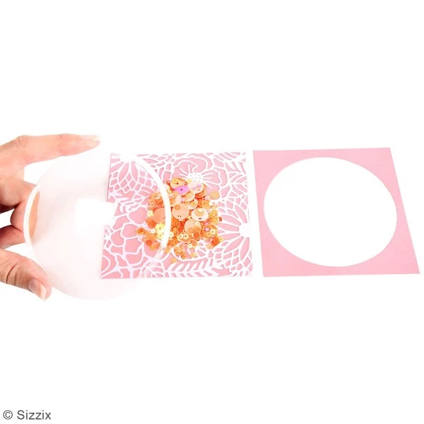 Vous l’aurez compris vous pourrez confectionner facilement des cartes Shaker box appelées aussi Cartes à secouer et y insérer des sequins, paillettes ou des perles ! Ces dômes 3D Shaker sont compatibles avec le set de matrices Sizzix Framelits Cercles.