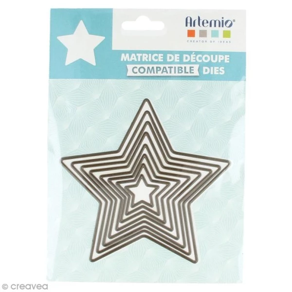 Ce type de die Artemio Etoiles imbriqués (8 pcs), appelé également pochoir ou matrice de découpe, s’utilise avec la plupart des machines de découpe. Vous pouvez ainsi réaliser vos propres coupes et créer de beaux embellissements grâce à ces grands dies Etoiles ! De quoi sublimer vos cartes, pages de scrapbooking, photographies, inscriptions, etc.