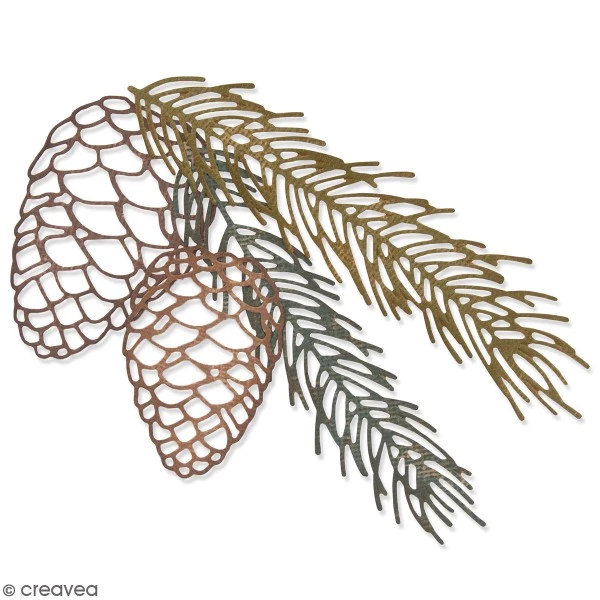 Ce set de matrices Sizzix Thinlits Branche de pin en métal (appelée également forme de découpe ou die), pourra être utilisée avec toutes les machines de coupes Sizzix (Big Shot, BIGkick et Vagabond etc).