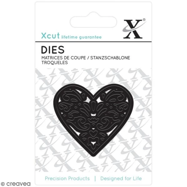 Cette petite matrice Xcut Coeur en filigrane (appelĂ©e Ă©galement pochoir de dĂ©coupe ou die), pourra ĂȘtre utilisĂ©e avec la machine de coupe Xcut, ainsi que la plupart des machines de dĂ©coupe (Big Shot, Cuttlebug, etc).