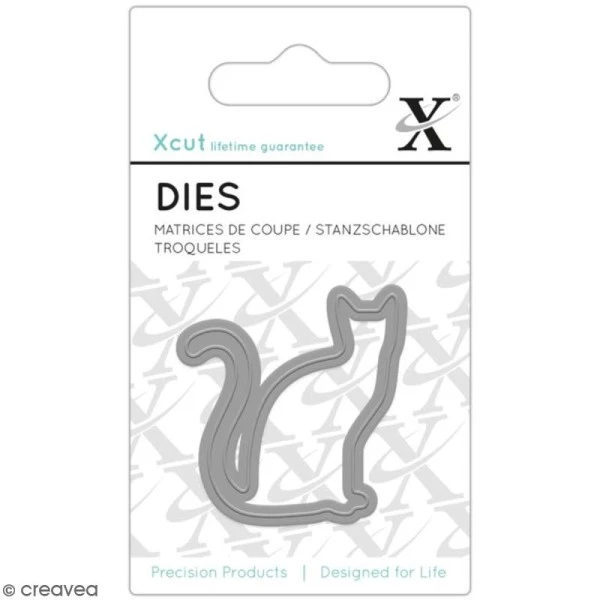 Cette mini matrice de coupe Xcut Chat, (appelée également pochoir de découpe ou die), pourra être utilisée avec la machine Xcut ainsi que la plupart des machines de coupe (Big Shot, Cuttlebug, etc.)