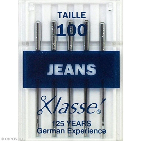 Description de Aiguilles jeans pour machine – Acier – Taille 100 – 5 pcs