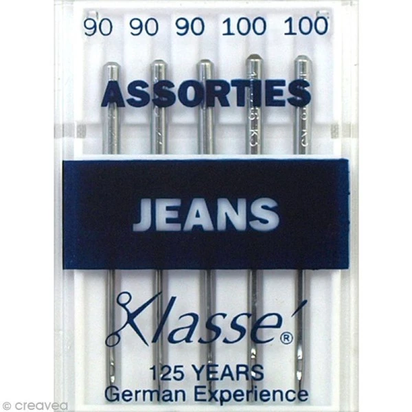 Description de Aiguilles jeans pour machine – Acier – Tailles assorties – 5 pcs