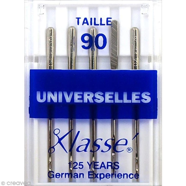 Ces 5 aiguilles, de Tailles 90, sont idéales pour réaliser tous vos ouvrages sur tissus de literie, toiles, costumes et autres tissus naturels et synthétiques. Très solides et de haute qualité, système 705H, elles sont adaptables sur toutes les machines à coudre et seront indispensables dans toutes les boîtes à couture.