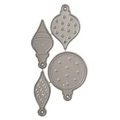 Matrice de découpe et d’embossage en forme de boules de Noël avec 4 petites boules de Noël pour décorer vos créations de papeterie, une carte de vœux ou des remerciements pendant les fêtes de fin d’année.