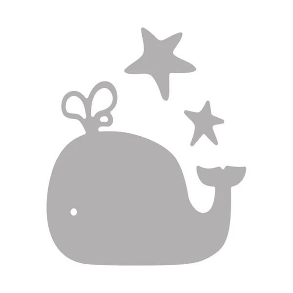 Matrice de découpe et d’embossage en forme de baleine avec 2 petites étoiles pour décorer vos créations de papeterie, un faire part de naissance ou une invitation à un anniversaire d’enfant.