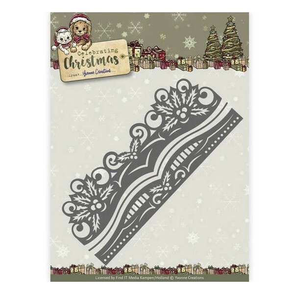 Description de Die matrice de découpe embossage Yvonne Créations Célébrate Christmas HOLLY BORDER 10112